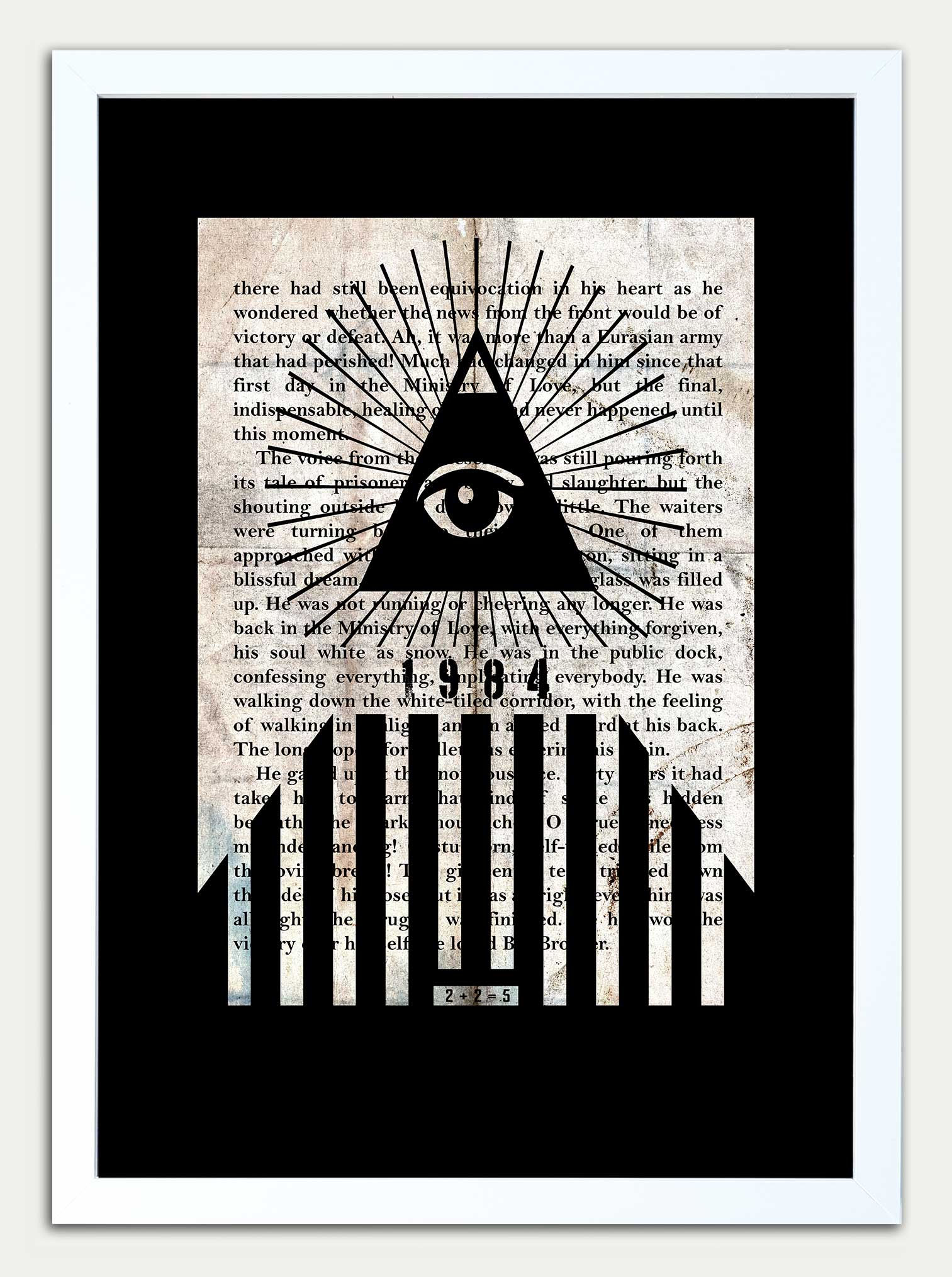This is print 1. "2+2=5" Featuring the last page of 1984. Winston has discovered that he loves Big Brother.