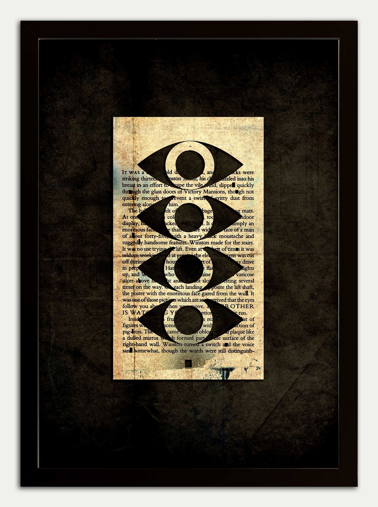 Double - SUPER GRUNGE - papercut print from George Orwell's dystopian master piece 1984.