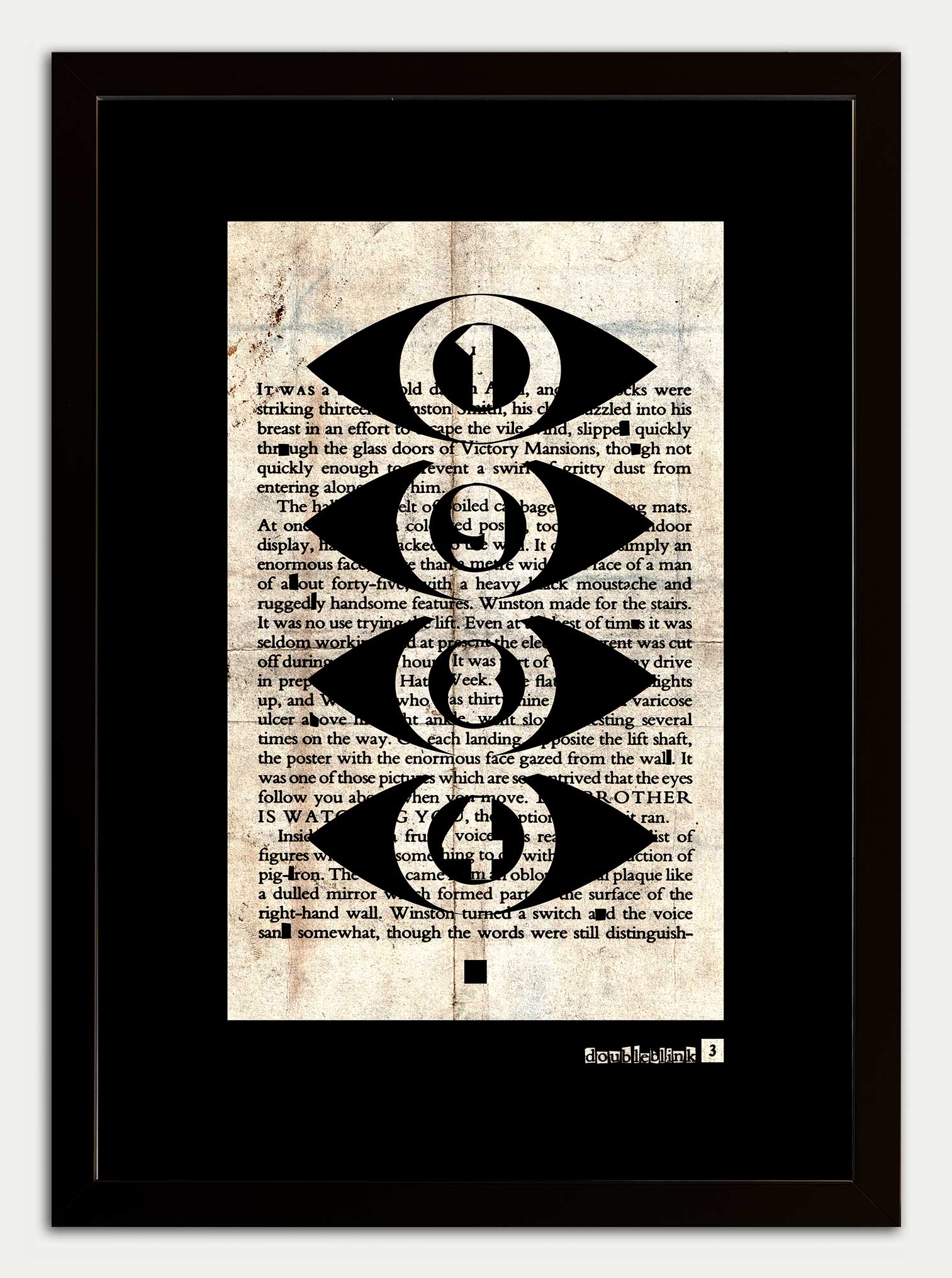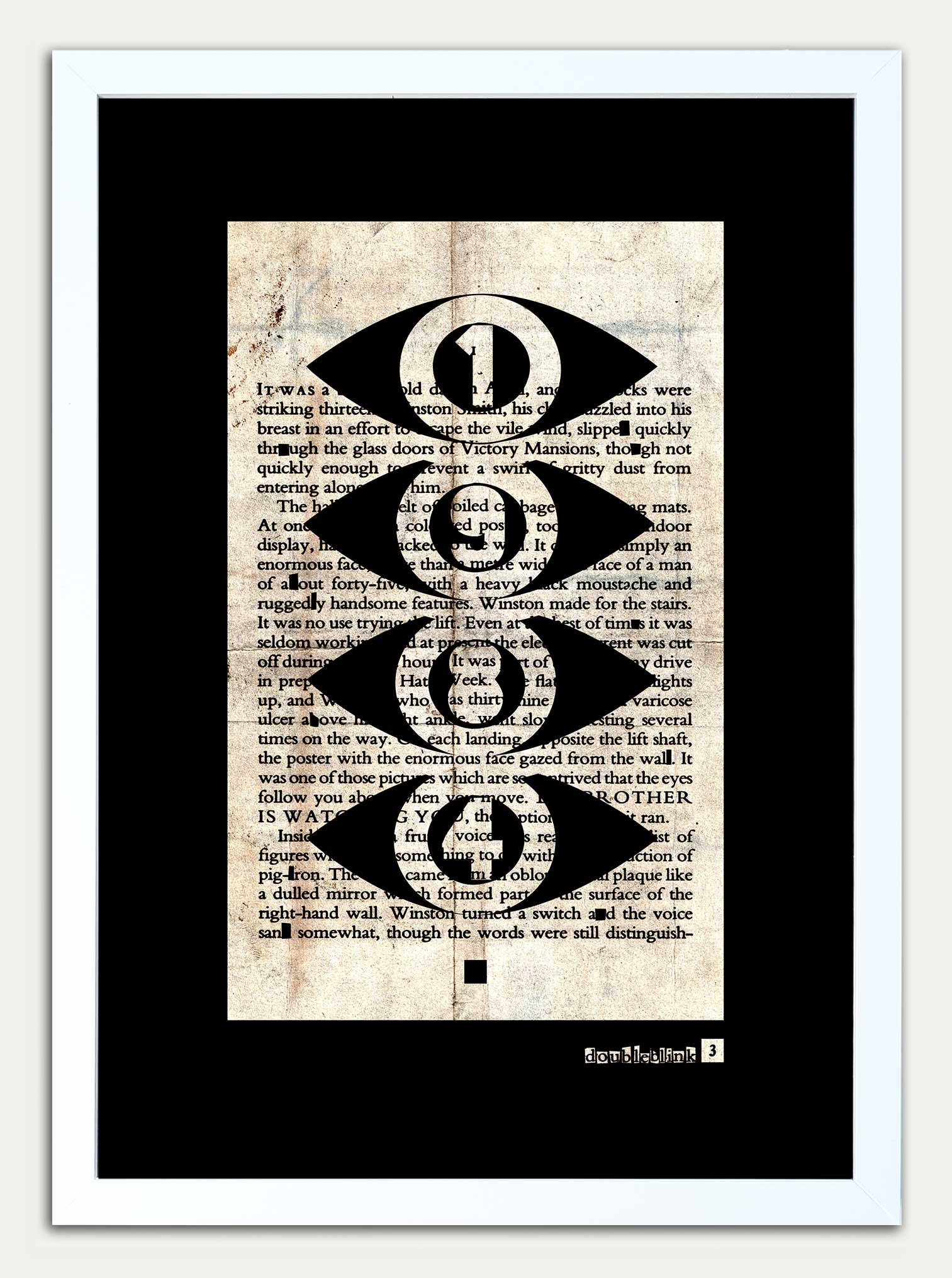 This is print 2 and features the opening page of 1984. I have cut out two pairs of eyes and the word "DoubleBlink" from the page.