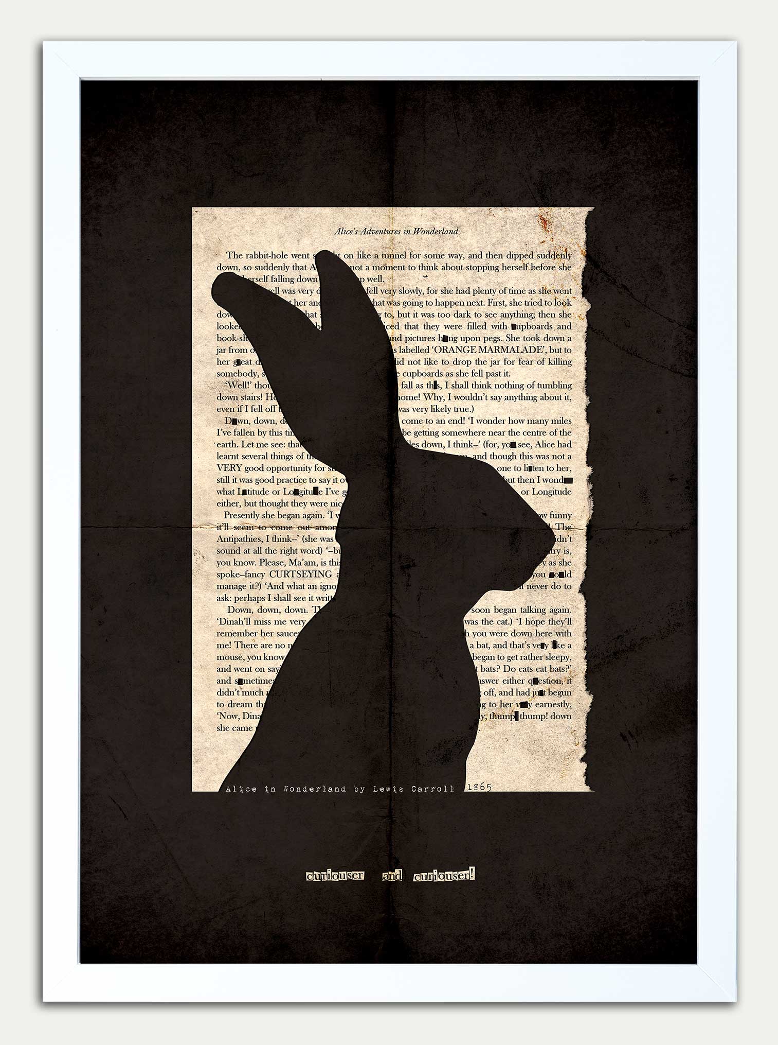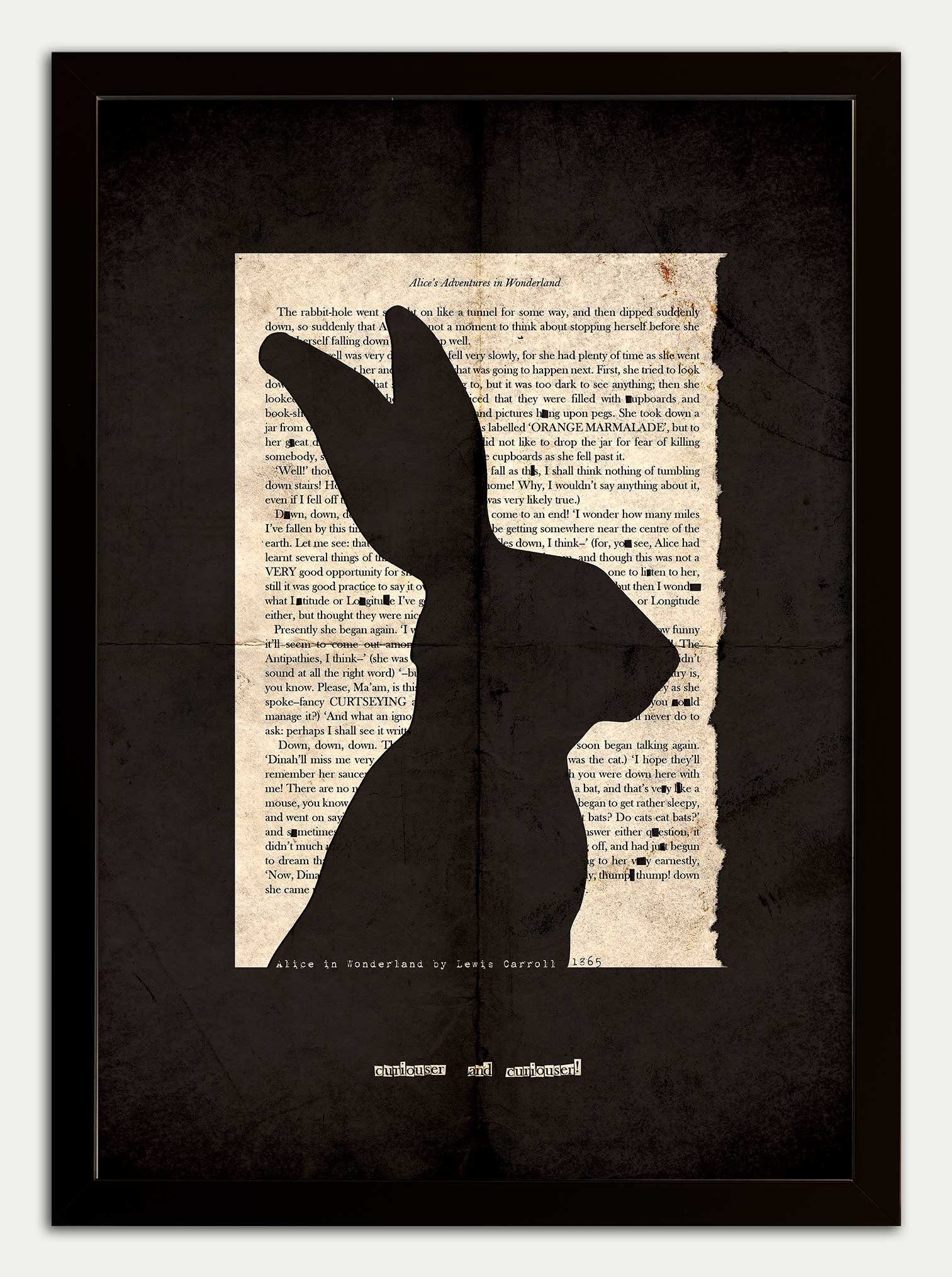 Alice in Wonderland "Hare" Black Grunge Fine Art Print