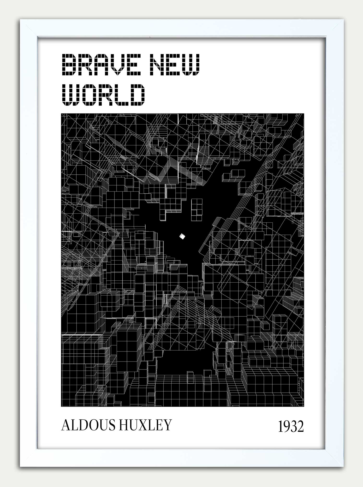 Brave New World fine art book cover print. Written by Aldous Huxley. First published in 1932.