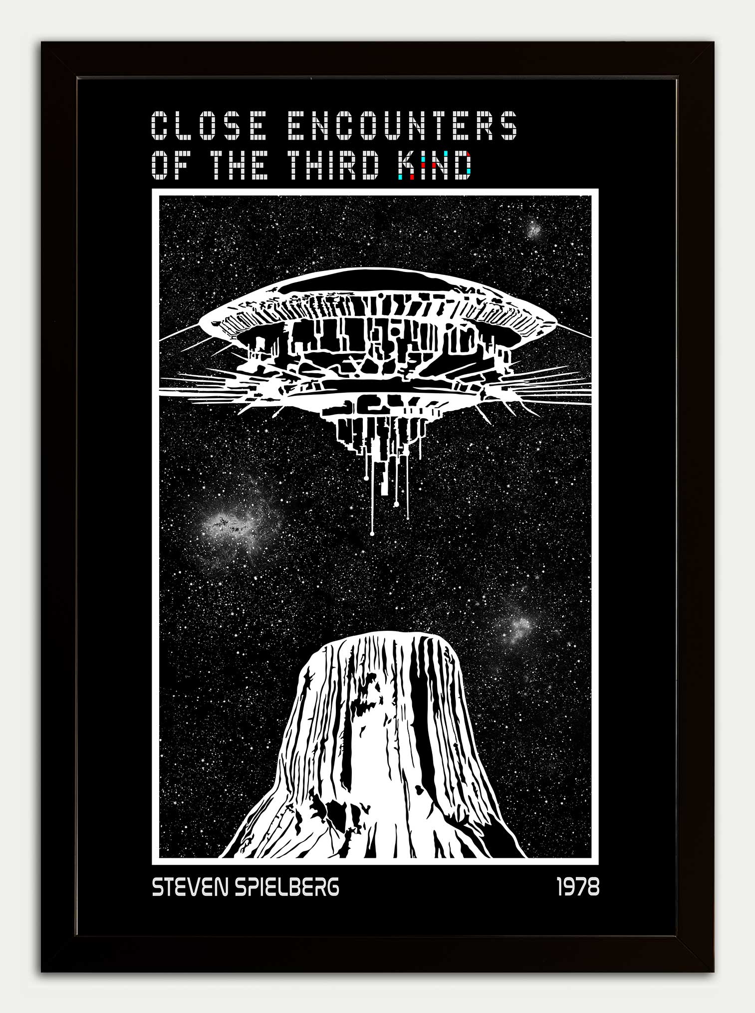 Close Encounters of the Third Kind fine art print featuring the Mother ship hovering over Devil's Tower.