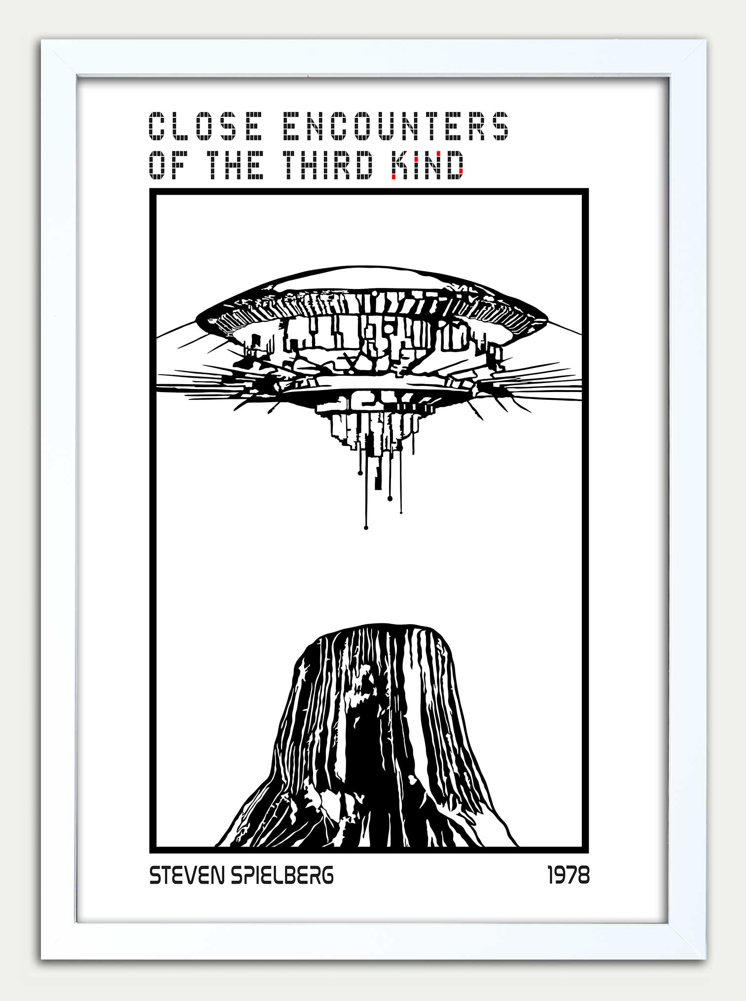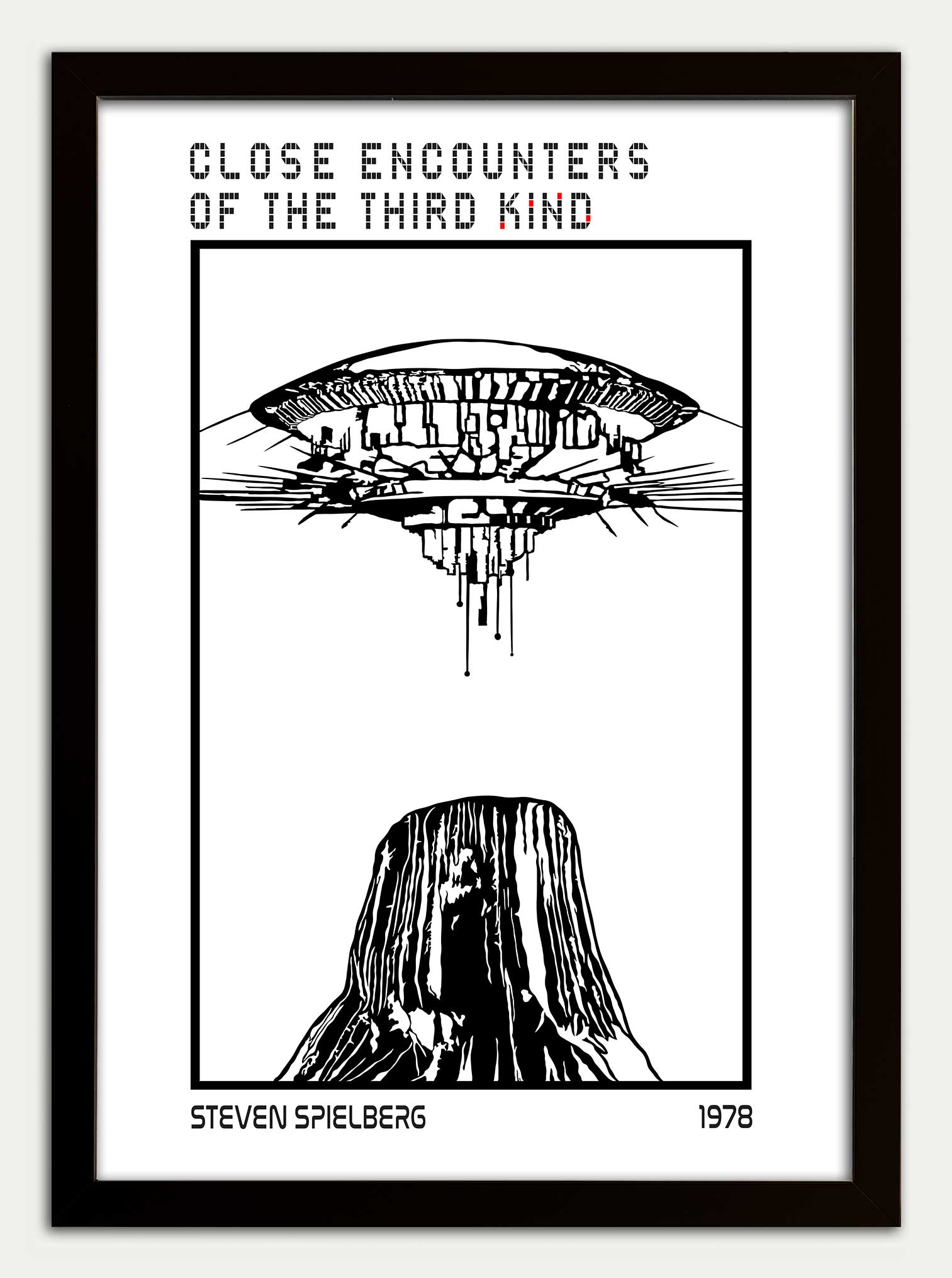 Close Encounters of the Third Kind fine art print featuring the Mother ship hovering over Devil's Tower. Red edition