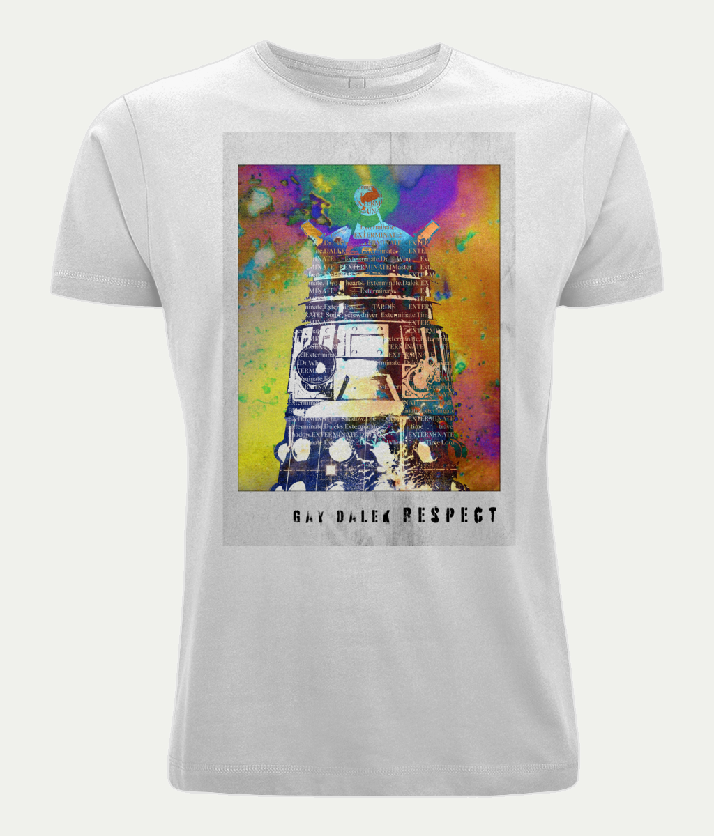 Dr WHO Gay Dalek Respect super big grunge polaroid on a T-shirt edition.