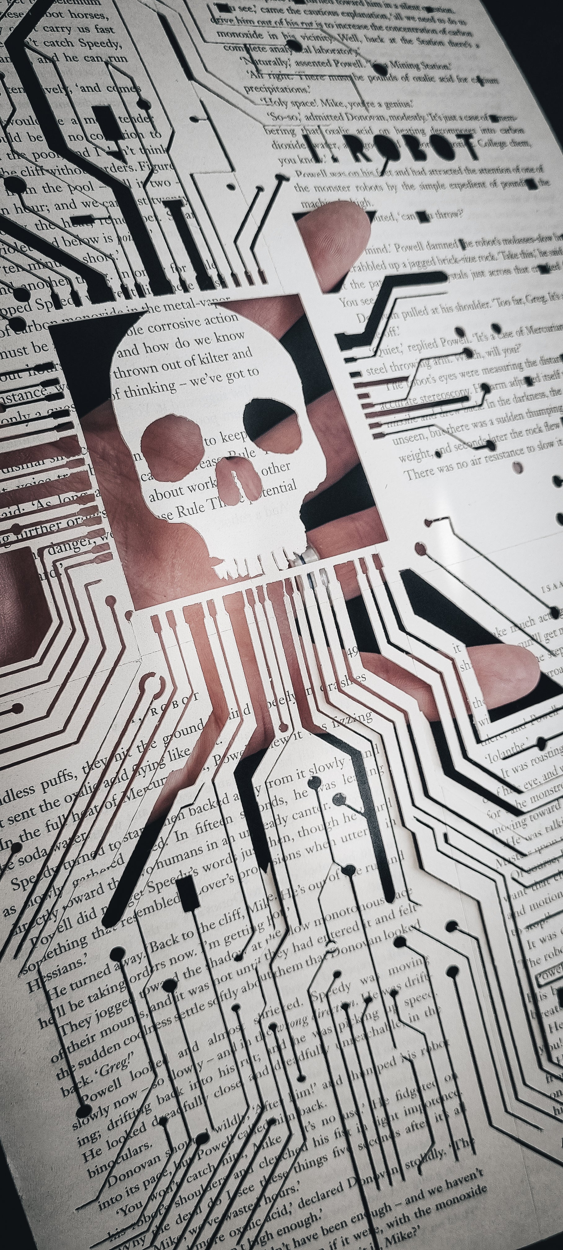I, Robot 4 page papercut. I have a love/hate relationship with IT, but this papercut deals with a far more dangerous, looming threat: Artificial Intelligence. We seem to be moving at great speed towards a future where AI plays a far greater role in our lives. I'm not confident.