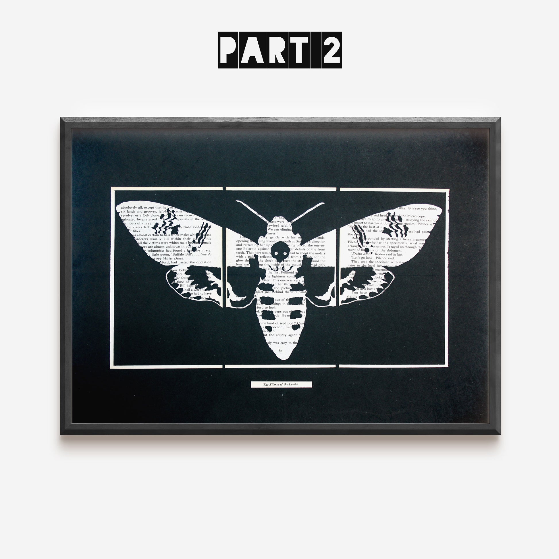 Death Head Moth artwork using 3 pages taken from Thomas Harris' Silence of the Lambs.