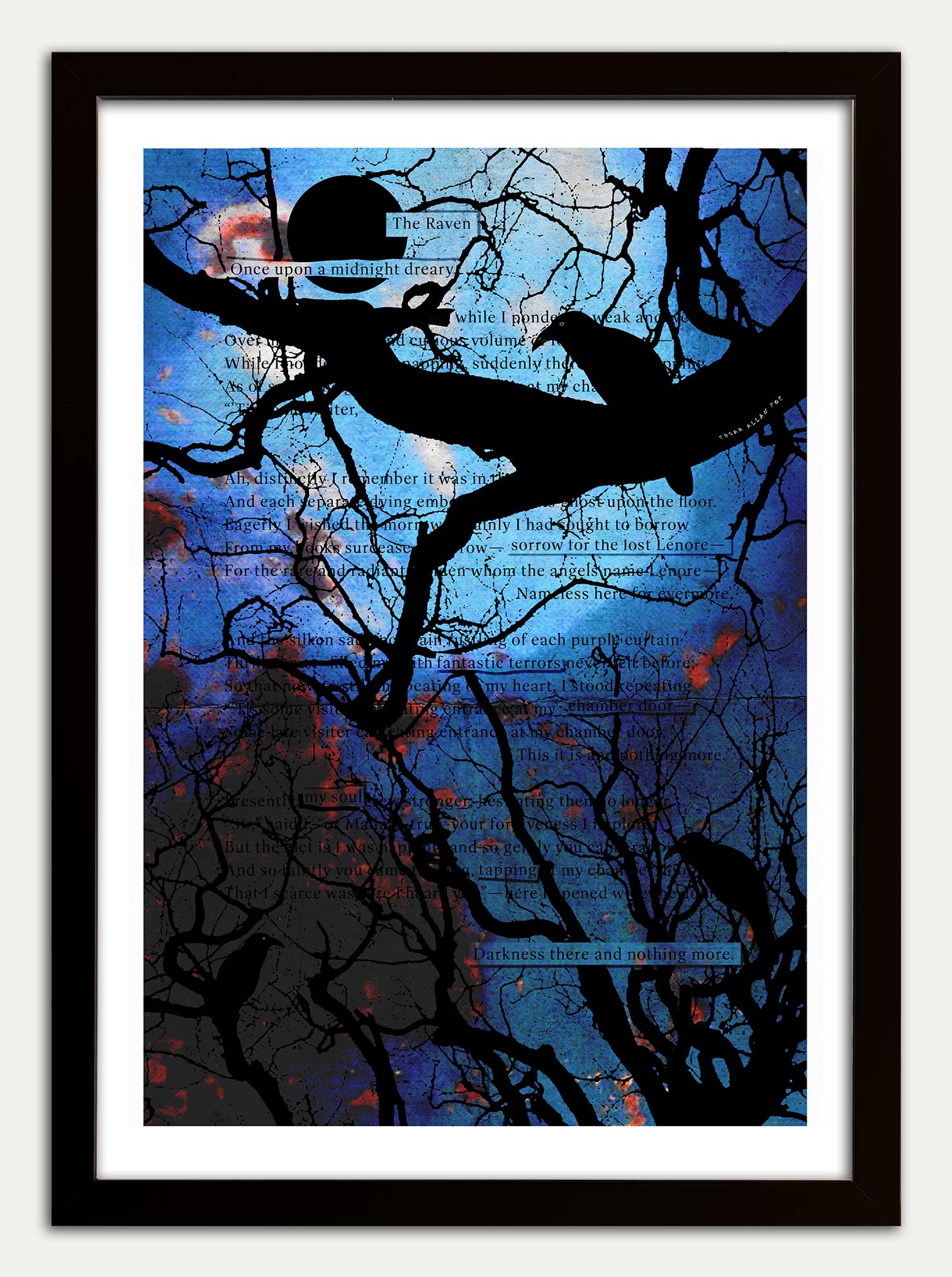 The Raven artwork by Edgar Allan Poe. This is the opening 4 verses from E.A.P.s seminal work The Raven. The title is inspired by a line in verse 3 [highlighted]. This is the 1st print in a f-part print collection
