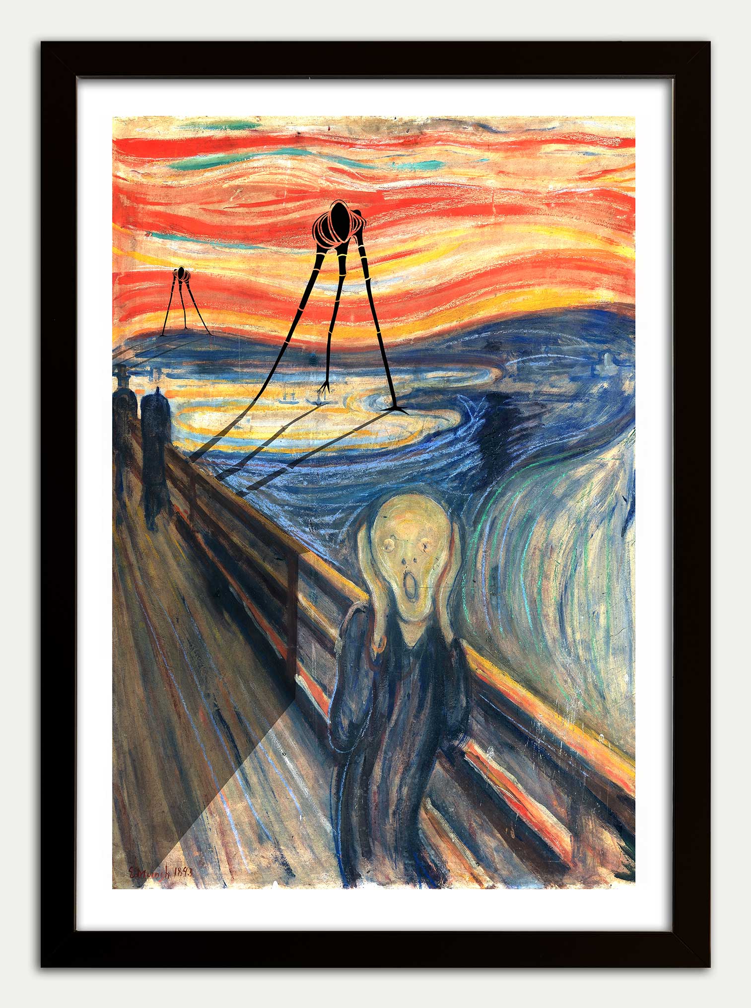 War of the Worlds meets Edvard Munch's The Scream in this apocalyptic mash up. Martian Fighting Machines cast advancing shadows across the bridge.